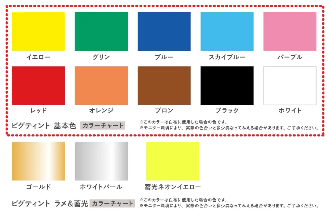・基本色10色、ラメ2色、蓄光1色、混色可能