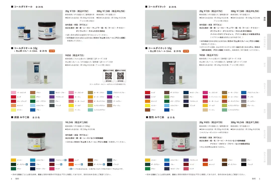 2026年度版では表紙写真に使用している技法用染料リアクトと堅牢スレン建染め染料を使用した「縫い絞りの模様着色染め」の手順を掲載しております。