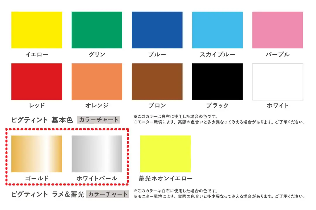 ・基本色10色、ラメ2色、蓄光1色、混色可能