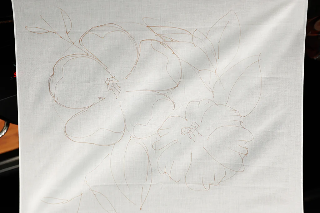 みやこ染 消えるマーカーペンで布に下絵を描きます。
