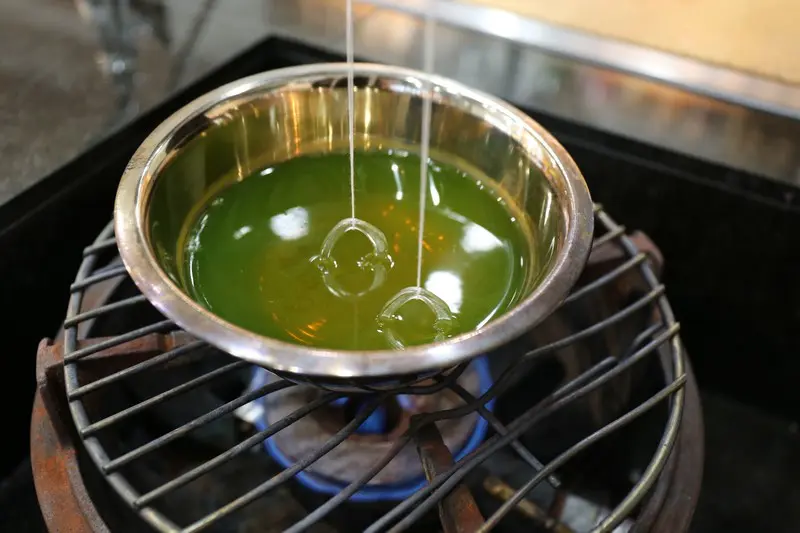 撹拌せず入れたままにしておくと、熱でビーズが変形したりムラになる原因になるので注意してください。