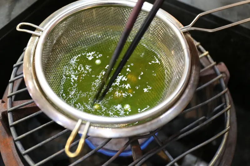 火の上は手が熱くなるので、糸を長めにして距離を取った方が安全です。