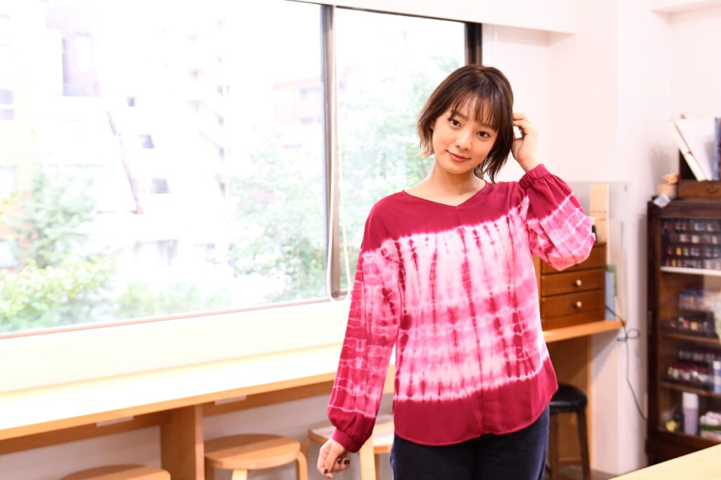 今回は、ポリエステル100%のブラウスを「みやこ染」でタイダイに染めてみました。
