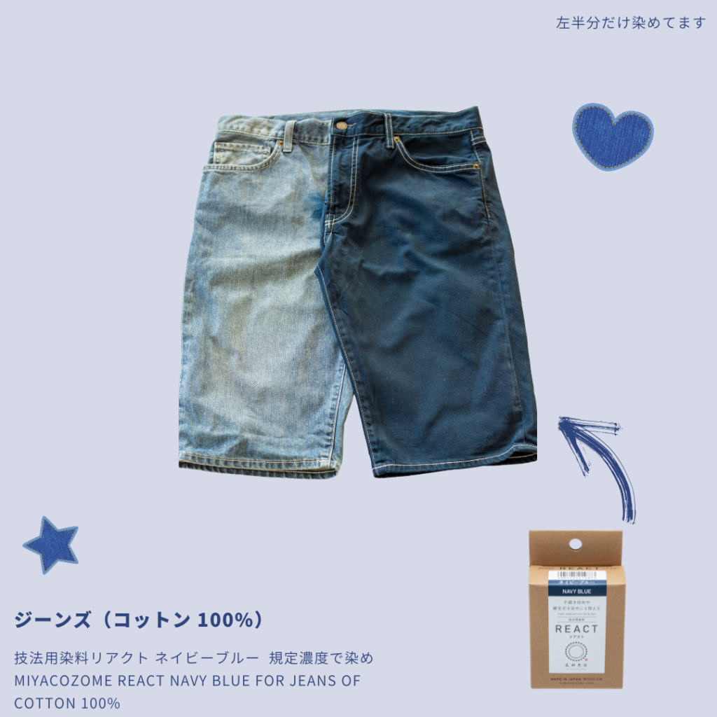 こちらでご紹介する染料はいずれもコットンジーンズなら染色可能です。