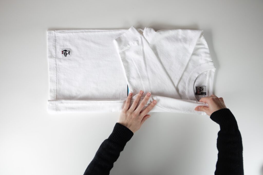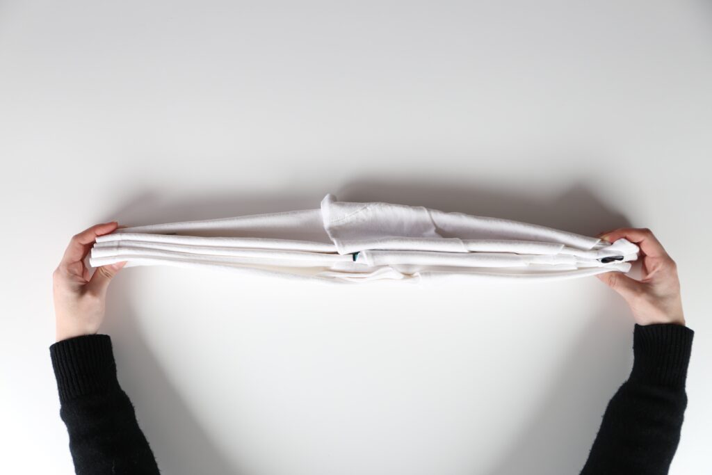 1, Tシャツの袖を前身頃側に畳む