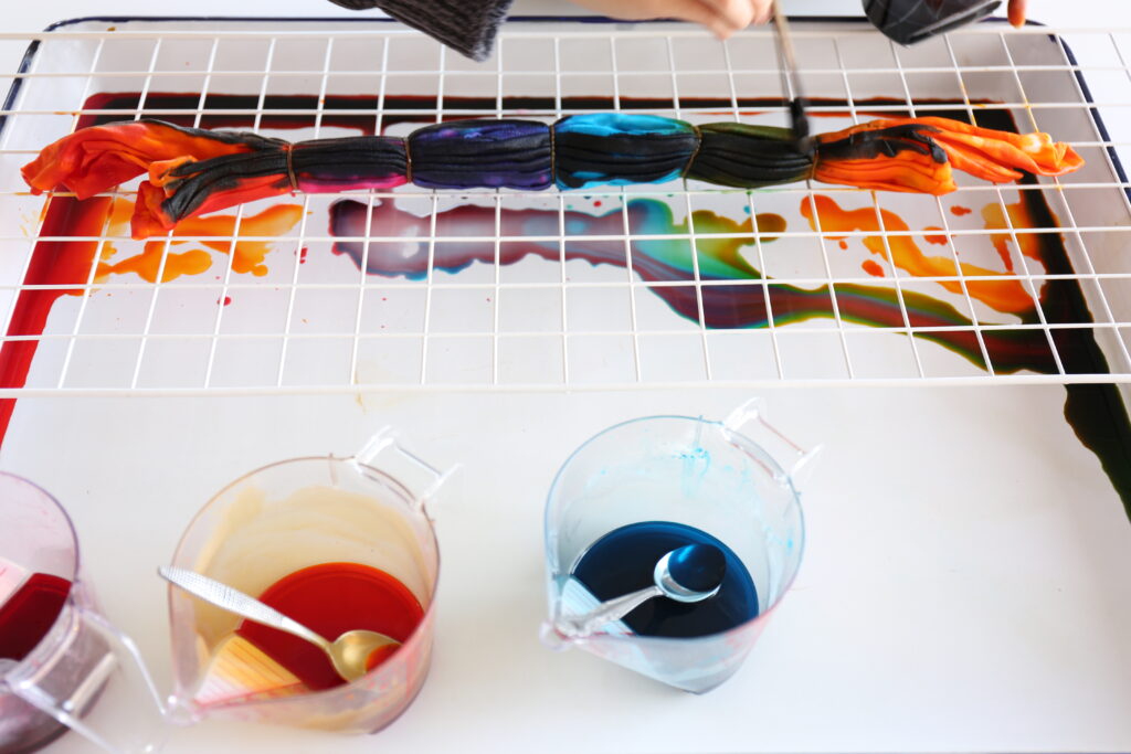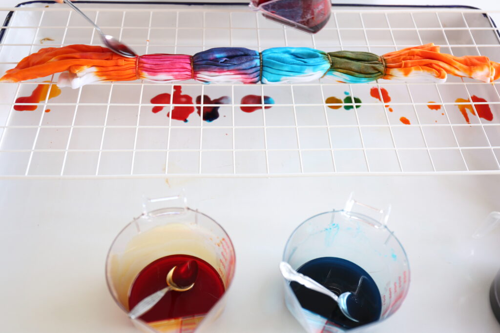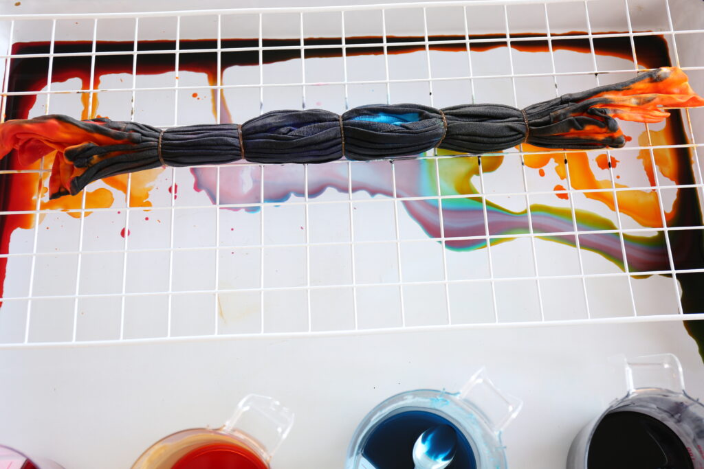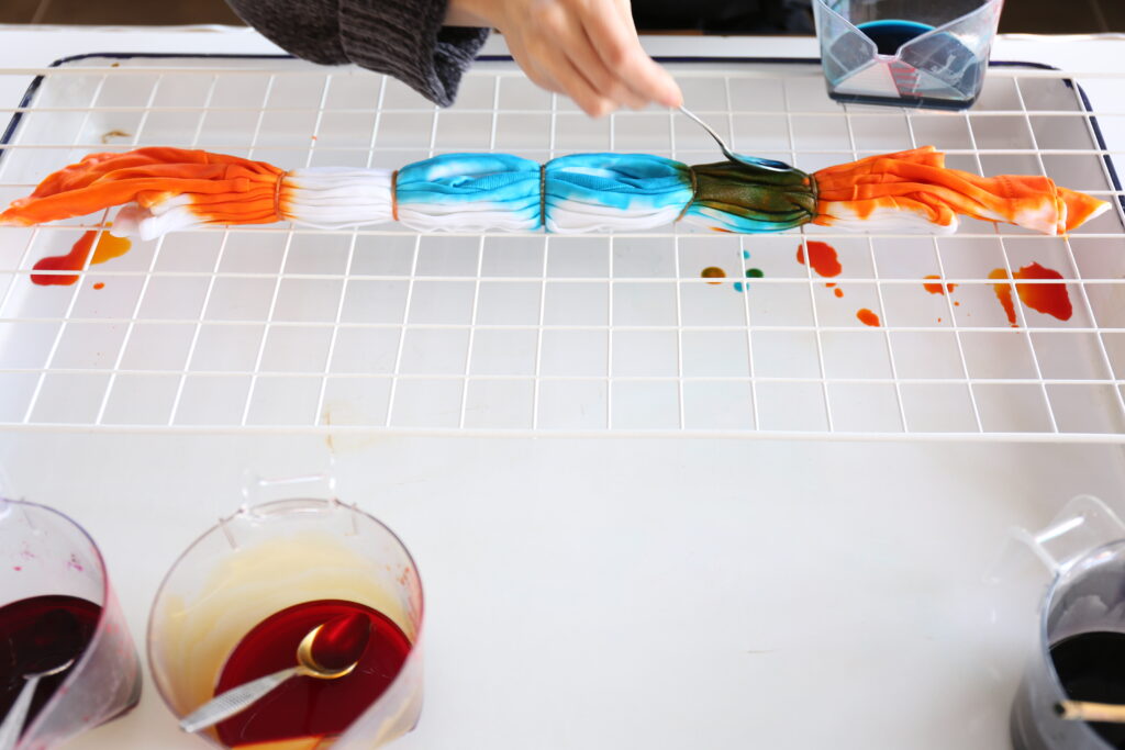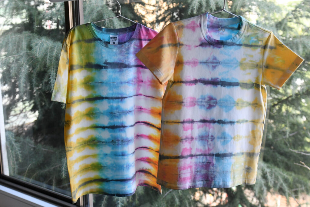 輪ゴムで絞るだけですが染め方次第でオリジナルの虹色