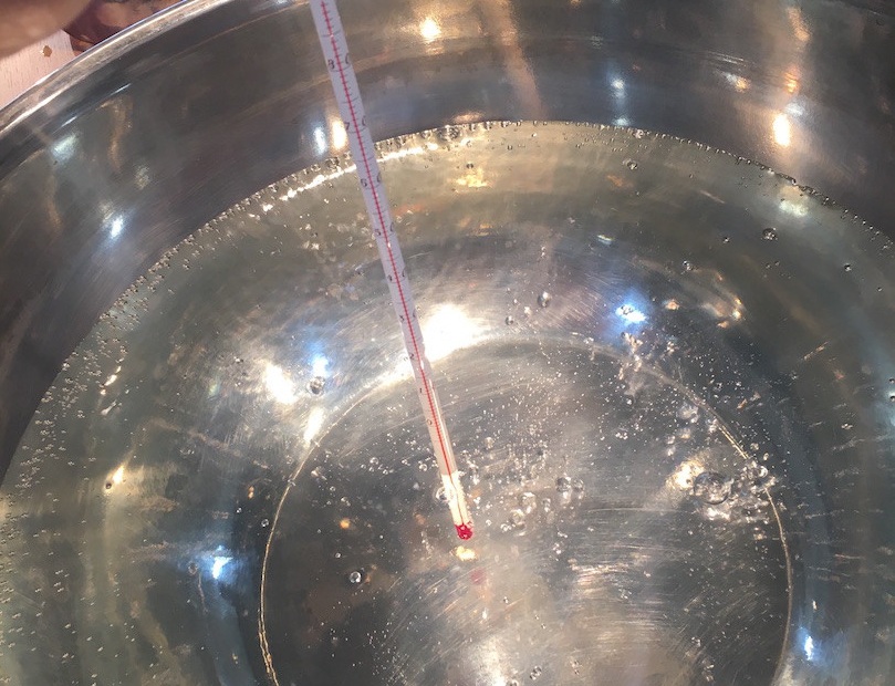 90程度の温度は中央底にブクブク水泡が上がるだけでなく、周りにもブクブクしているようになるのが目安。