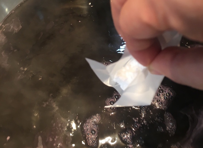 ③染料を溶かし、その後、濃色促進剤も溶かします。