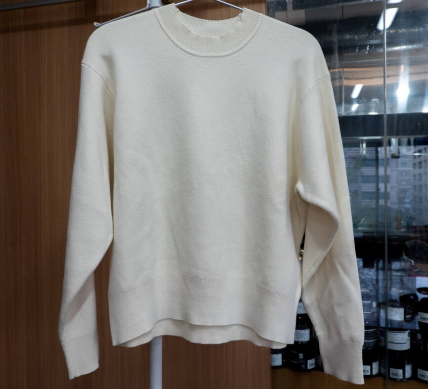 ② トレーナーをテーブルなどに一度広げます。