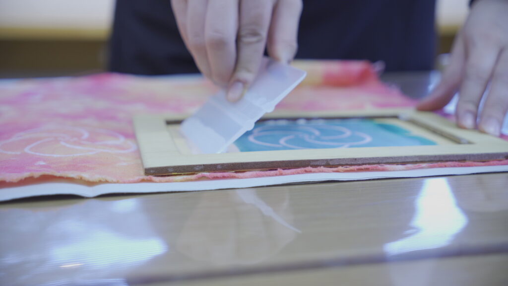 ⑦乾いてから、ピグティントでシルクスクリーンをしてワンポイントのアクセントを入れてみます。