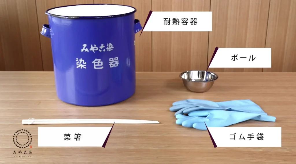 染色ができる素材であることがわかったら、次に染色に必要な道具を用意しましょう。