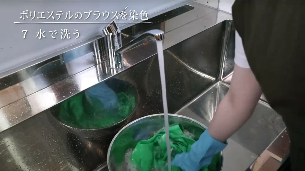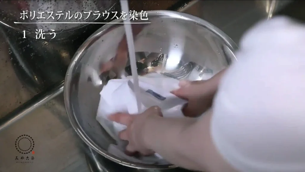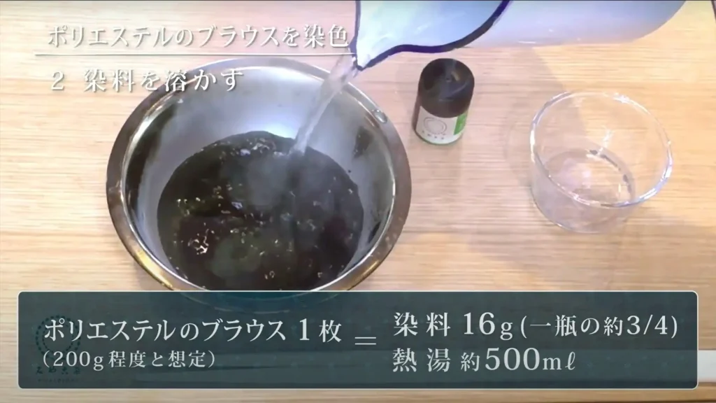 ポリエステルの詳しい染め方は動画を見ていただいた方がわかりやすいと思いますので、こちらではおおまかな流れをご紹介します。