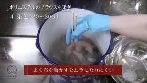 浸したまま放置すると染めムラになりやすいため、よくかき混ぜながら染めましょう。