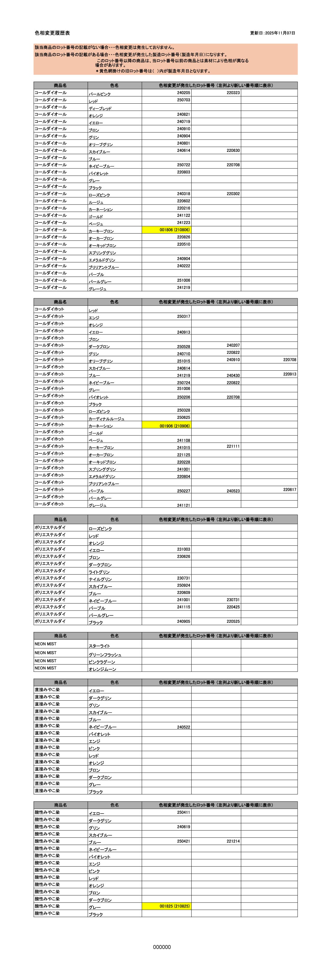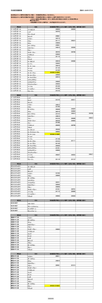 色相変更が発生した製造ロット番号(製造年月日)になります。