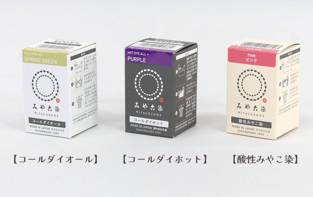 また、みやこ染ではウールが染められる染料を3種類ご用意しております。