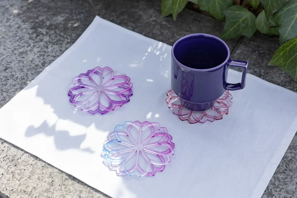 『染めてつくる桜のアクリルコースター』