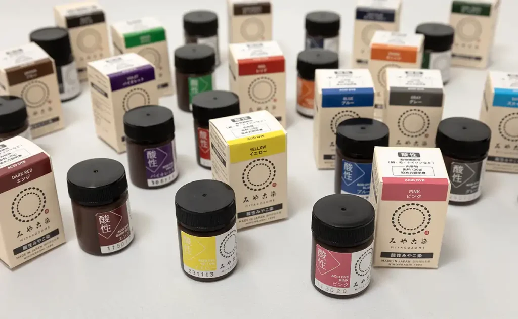 ウールやシルクといった動物繊維専用の染料『酸性みやこ染 20g』のパッケージをリニューアルいたしました。