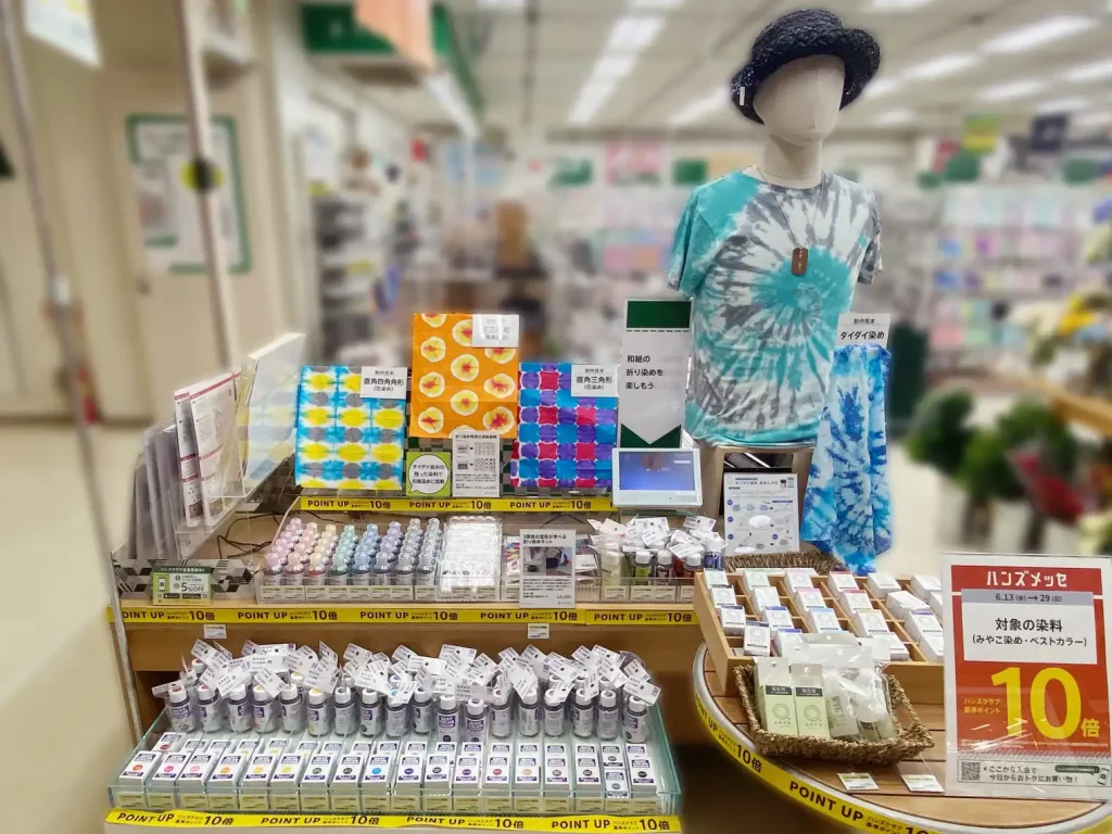 今年の夏も全国のハンズ13店舗にて、みやこ染の特設コーナーを設けていただき、染料やキットの販売を行なっております。