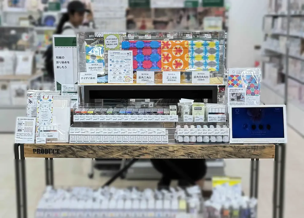 和紙の折り染めはその手軽さや仕上がりの華やかさから、海外からの観光客の方にも人気が高く、ハンズ渋谷店では開催初日に「和紙の折り染めキット」をはじめとした関連商品が一時的に品切れになってしまうほど注目の商品となっております。