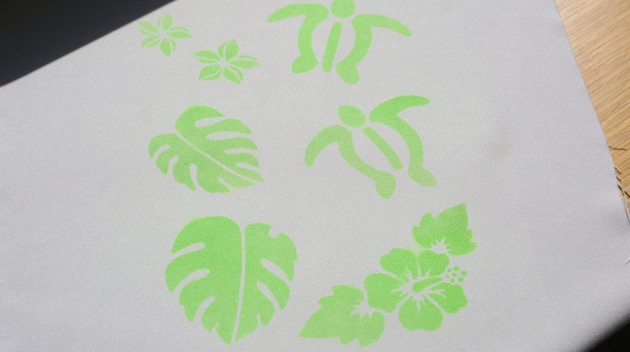 ガイアノーツ社の分離式スプレー「イージーペインター」で染料を噴射し、アイロンで固着することで発色します。