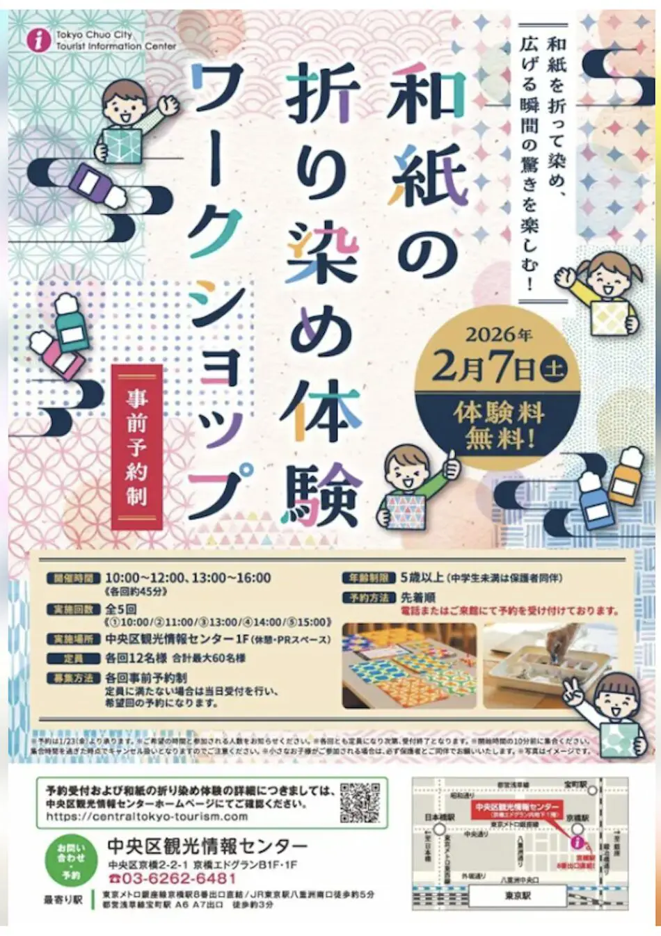 2/7(土)中央区観光センターにて和紙の折り染め体験ワークショップ開催!